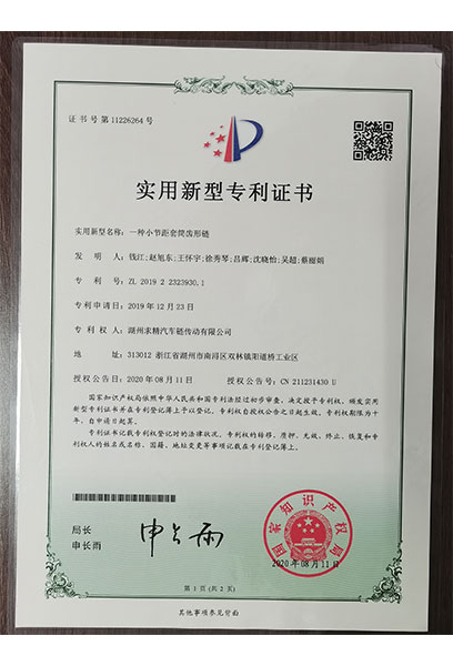 公司已通過IATF16949質量體系認證,是國家重點高新技術企業(yè),湖州市重點骨干企業(yè)、湖州市工業(yè)“雙高”企業(yè)。